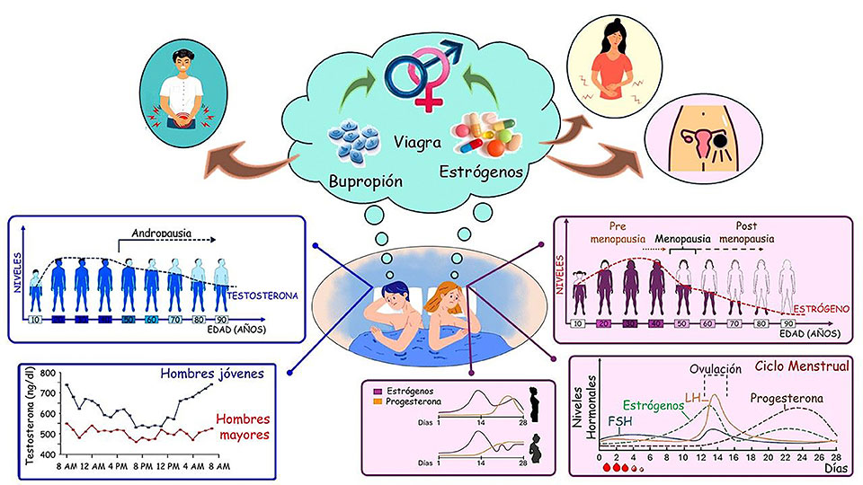 Históricamente ha existido un sesgo en la investigación preclínica que privilegia la utilización de animales del sexo masculino para la realización de los diferentes estudios. Las conclusiones simplemente se extrapolan a los individuos del sexo femenino. La razón de este sesgo tiene que ver con la variabilidad en los resultados obtenidos en hembras adultas, mismos que se asocian con las diferentes condiciones hormonales que éstas pueden presentar (Fig. 2). Sin embargo, justo ese factor de variación deja en claro que la extrapolación de resultados del sexo masculino al sexo femenino no es confiable. Por ello, para determinar los efectos de un tratamiento o las características de un padecimiento en individuos del sexo femenino, es necesario evaluarlos en cada una de las distintas condiciones hormonales que pueden presentar, que incluyen: las diferentes etapas del ciclo hormonal, el embarazo, la lactancia y la menopausia. Esta dificultad se refleja tanto en la descripción de las disfunciones sexuales femeninas como en las opciones para su tratamiento.
