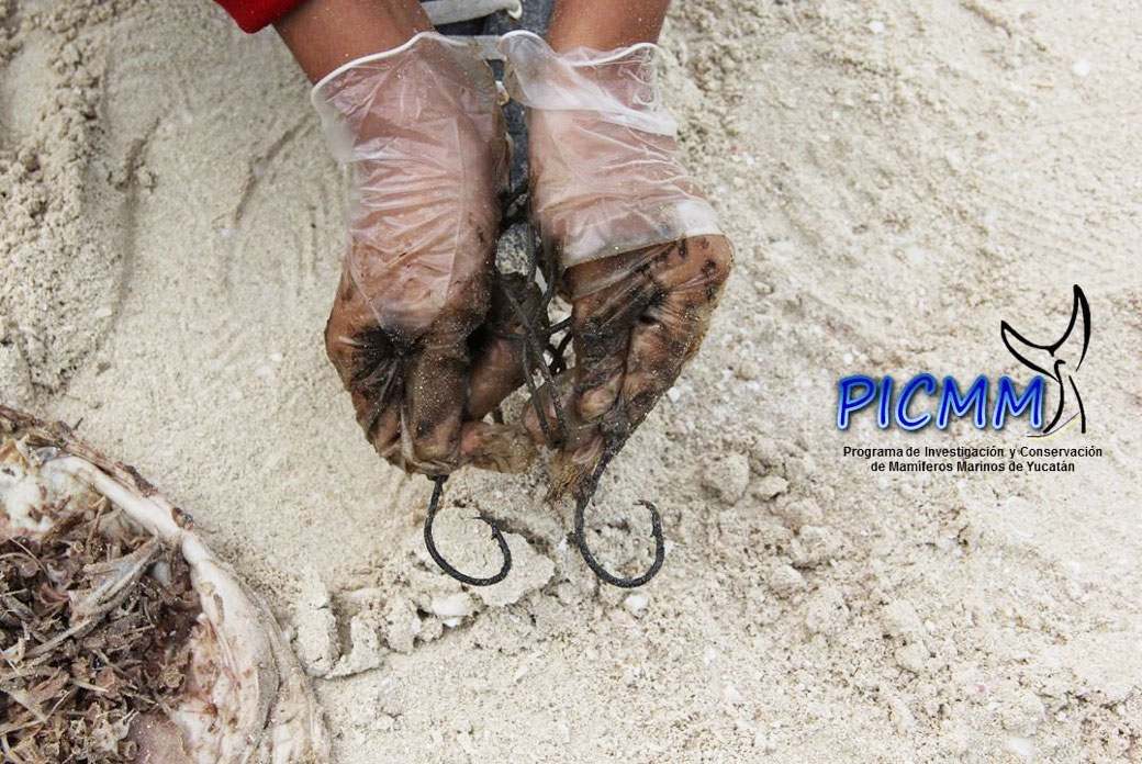 ¿Es posible que las actividades humanas sean causantes de algunos varamientos? La respuesta es ¡si! Entre las principales causas se encuentra la interacción con las pesquerías pues en su intento por depredar peces en los sitios de pesca, los delfines quedan incidentalmente atrapados en las redes, provocando heridas y también se dañen sus pulmones o asfixien. Las colisiones con embarcaciones también les pueden provocar fracturas, golpes y lesiones graves como amputaciones en sus aletas e incluso presentar restos de redes de pesca y anzuelos en su boca o en alguna parte de su cuerpo causando su muerte (Figura 5).